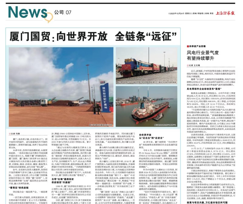 上海證券報(bào) | 廈門(mén)國(guó)貿(mào):向世界開(kāi)放 全鏈條“遠(yuǎn)征”。