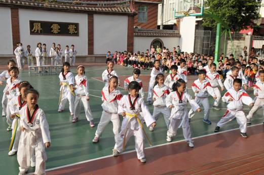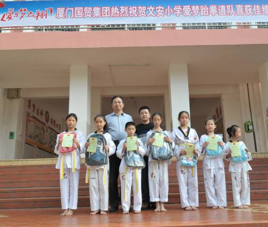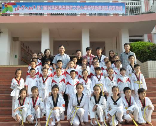 文安小學(xué)愛(ài)夢(mèng)跆拳道隊(duì)成立于今年年初,由廈門(mén)國(guó)貿(mào)集團(tuán)贊助支持,并取名為“愛(ài)夢(mèng)