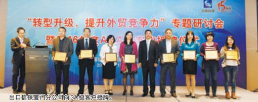 在中國(guó)信保近日舉辦的“轉(zhuǎn)型升級(jí),提升外貿(mào)競(jìng)爭(zhēng)力”專題研討會(huì)暨AAA級(jí)客戶授牌儀式上,廈門國(guó)貿(mào)被中國(guó)信保授予AAA級(jí)客戶。據(jù)悉,中國(guó)信保將對(duì)獲授AAA級(jí)客戶的企業(yè)從承保、理賠、增值服務(wù)等方面制定差異化政策,大力支持這些重點(diǎn)客戶使用個(gè)性化承保方案開拓海外市場(chǎng)。