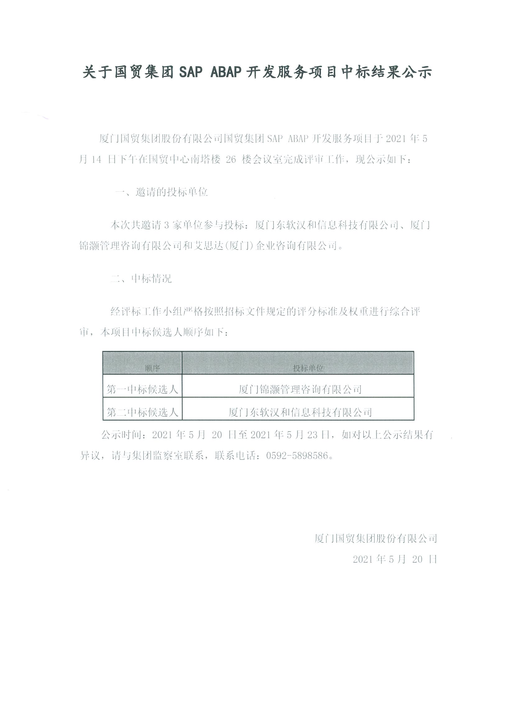 關(guān)于國貿(mào)集團SAP ABAP開發(fā)服務(wù)項目中標結(jié)果公示