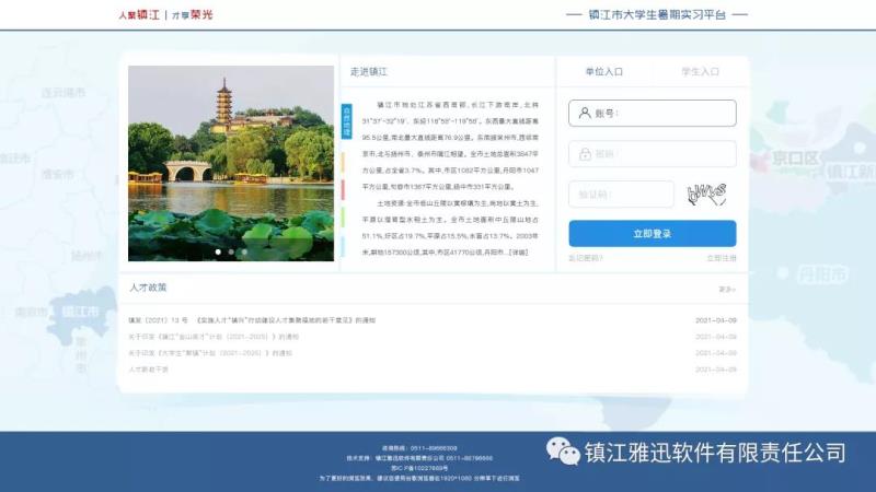 近日,由公司承辦的“鎮(zhèn)江市大學(xué)生暑期實習(xí)平臺”交付客戶使用。該平臺由市人才辦、團市委、市人社局聯(lián)合共建,平臺建設(shè)積極響應(yīng)了市委市政府產(chǎn)業(yè)強市“一號戰(zhàn)略”要求,深入推進(jìn)大學(xué)生“聚鎮(zhèn)”計劃,引導(dǎo)更多大學(xué)生走近鎮(zhèn)江、了解鎮(zhèn)江、融入鎮(zhèn)江,促進(jìn)青年人才在鎮(zhèn)集聚發(fā)展。